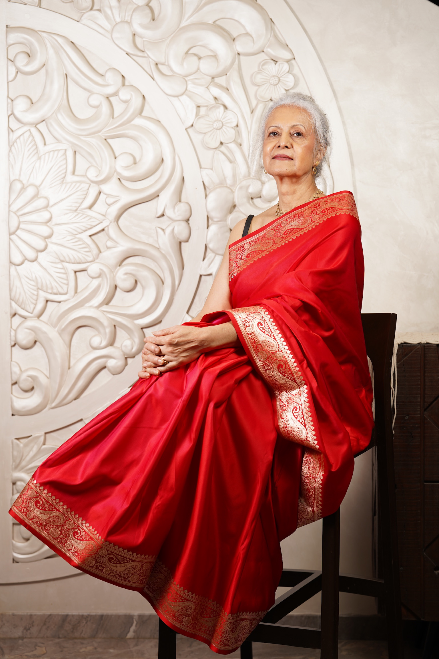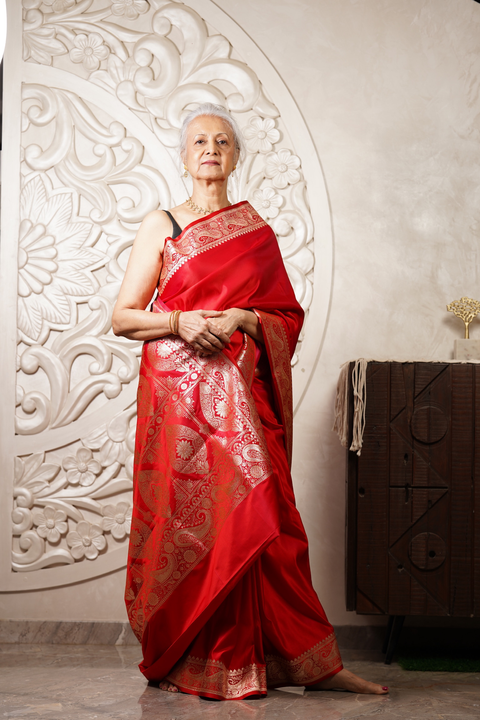 Sindoori Virasat from the Khayal-e-Banaras collection is a tribute to the enduring legacy of Banaras, expressed through rich silk and masterful handweaving.
